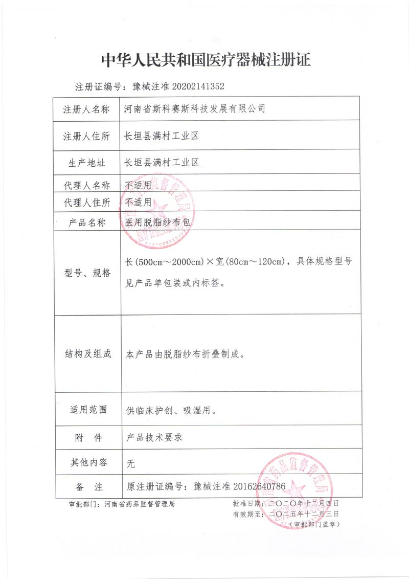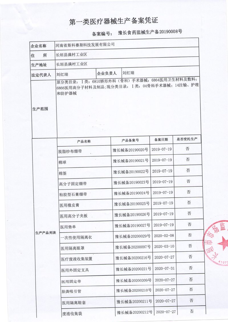 河南省斯科賽斯科技發(fā)展有限公司創(chuàng)建于 2011 年,位于“中國(guó)醫(yī)療耗材之都”- 河南省長(zhǎng)垣縣,西臨 308 省道,南靠新菏鐵路,北依長(zhǎng)濟(jì)高速,交通便捷,經(jīng)濟(jì)發(fā)達(dá),環(huán)境優(yōu)美。斯科賽斯積極進(jìn)入醫(yī)療健康和服務(wù)領(lǐng)域,秉承為用戶創(chuàng)造價(jià)值的理念,專注于醫(yī)用耗材解決方案的研發(fā)和運(yùn)營(yíng),并為用戶提供完善的產(chǎn)品解決方案;  斯科賽斯主要生產(chǎn)醫(yī)用麻醉系列、醫(yī)用高分子系列、醫(yī)用敷料包系列、醫(yī)用無紡布系列、醫(yī)用防護(hù)系列、醫(yī)用脫脂棉系列、生物材料制品類等七大類、100 多個(gè)品種、400 多個(gè)規(guī)格的產(chǎn)品。公司占地面積約 30000 平方米,建筑面積20000 平方米,擁有 10 萬(wàn)級(jí)的凈化車間總面積 10000 平方米。擁有國(guó)際先進(jìn)水平的生產(chǎn)設(shè)備和檢測(cè)儀器,技術(shù)裝備精良,檢測(cè)手段完善,為醫(yī)療行業(yè)的不斷發(fā)展進(jìn)步提供保障。公司順利通過 ISO9001、ISO13485 質(zhì)量管理體系認(rèn)證。  斯科賽斯堅(jiān)持研發(fā)高科技新產(chǎn)品,力爭(zhēng)在醫(yī)療器械關(guān)鍵領(lǐng)域取得技術(shù)和研發(fā)的重大突破;立足國(guó)內(nèi)和國(guó)際兩個(gè)市場(chǎng),逐步實(shí)現(xiàn)管理理念、經(jīng)營(yíng)機(jī)制、人力資源、技術(shù)、產(chǎn)品、市場(chǎng)等全方位對(duì)接,提高企業(yè)的核心競(jìng)爭(zhēng)力;過去的歲月里,斯科賽斯砥礪前行,誠(chéng)信務(wù)實(shí),銳意進(jìn)取,不斷創(chuàng)新,用自己的睿智和辛勞,以富有責(zé)任感的使命,在探索中追求,在追求中超越,致力于成為值得信賴的醫(yī)療用品生產(chǎn)企業(yè)!在未來的日子里,斯科賽斯將一如既往豪情滿懷,信心百倍,攜手并肩,執(zhí)著追求,向更高的的目標(biāo)前進(jìn),鑄造新的輝煌!
